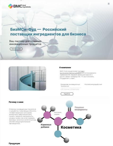 Вместо серой схемы было решено поставить 3D модель молекулы, а следом за ней обновили всю цветовую палитру сайта.