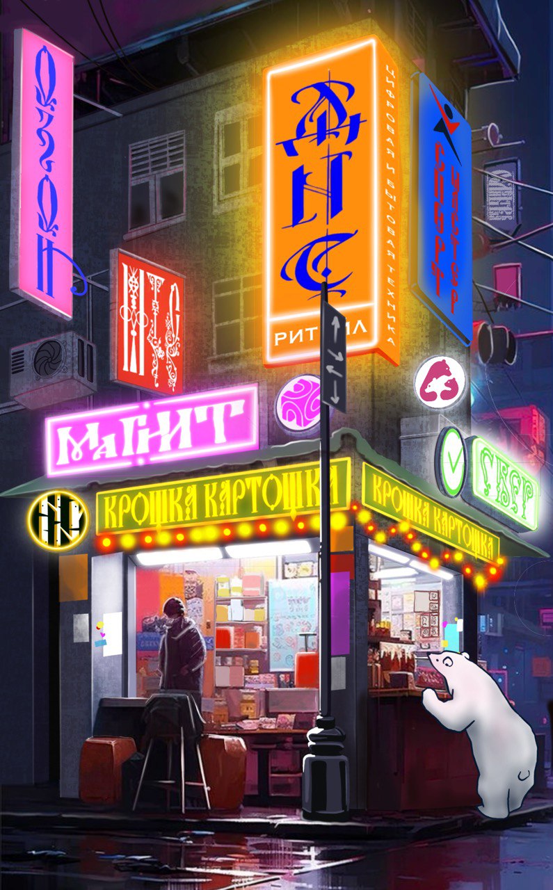Славянский киберпанк — это визуализация моего идеального будущего. Для выражения этой идеи я пользуюсь любимыми с детства советскими книжками по искусству и, конечно, вдохновляюсь визуальной культурой Японии. На примере истории этой страны мы знаем, что высокотехнологичное будущее творится исключительно руками человека, а значит и для нас нет ничего невозможного, и мы тоже можем создать себе такое будущее, которое только захотим.