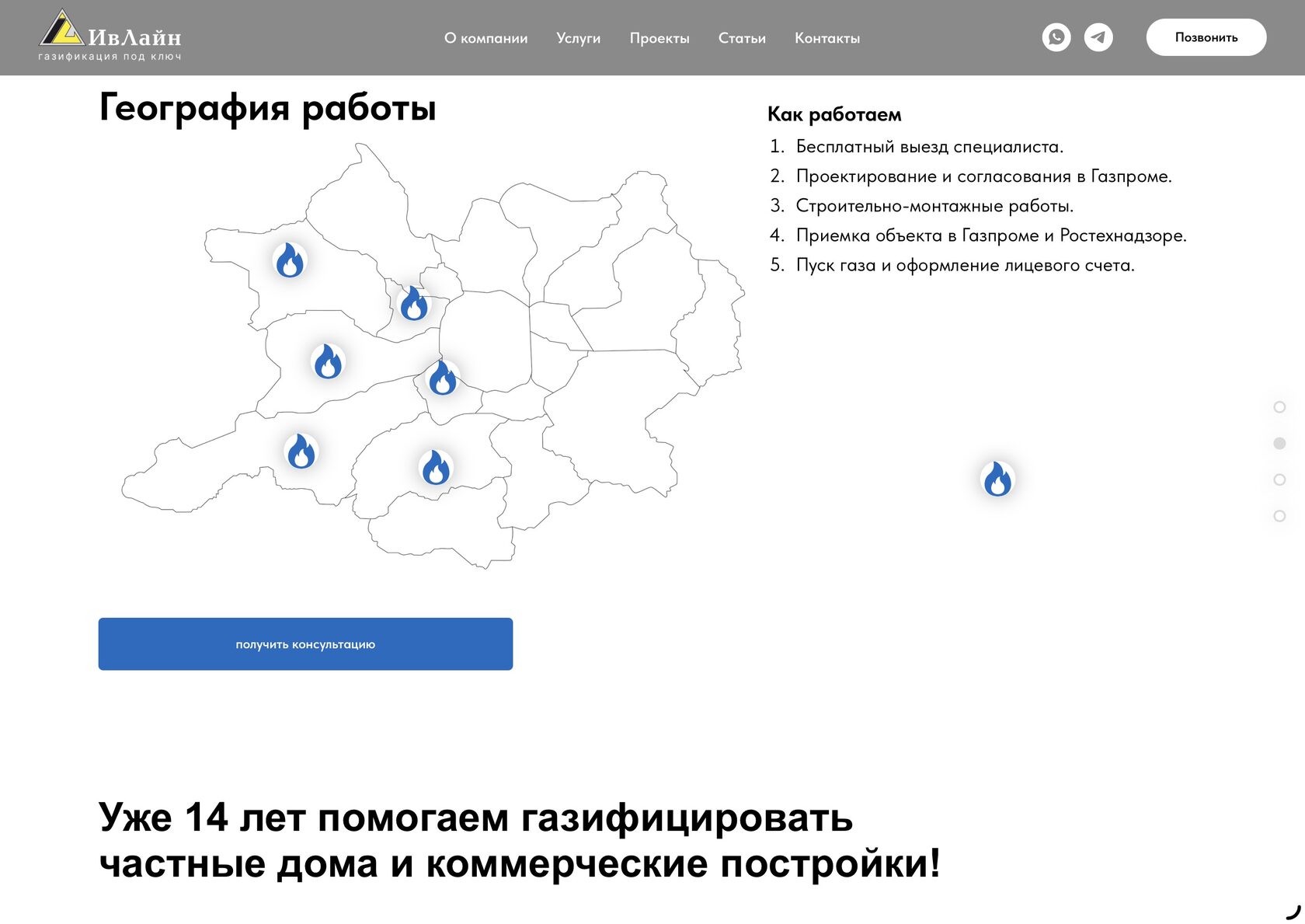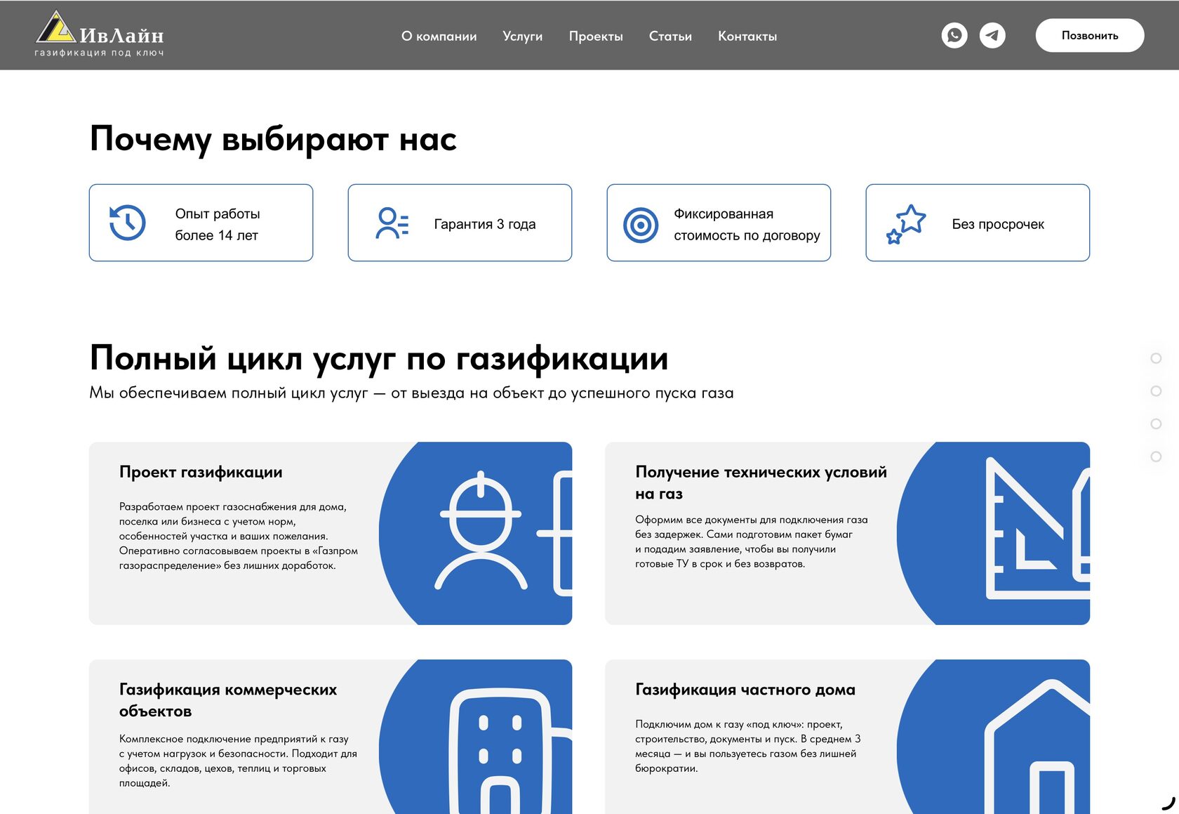 Корпоративный сайт компании по газификации объектов